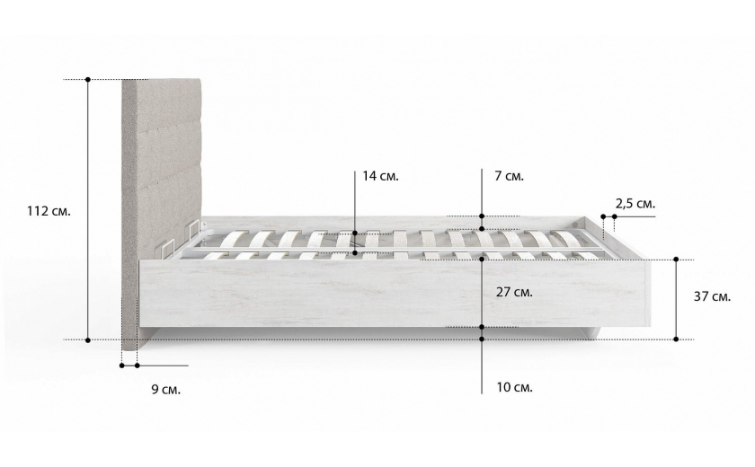 Кровать будет уникальной благодаря большой коллекции тканей и эко-кожи. При необходимости в комплект можно включить подъемный механизм с бельевым ящиком, который существенно увеличит объем хранения вещей. (+5990 рублей). В кровати используются газ-лифты, произведенные в Турции. В зависимости от размера кровати мощность газ-лифта составляет от 200 до 1150 Ньютонов.