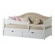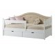 Тахта изготовлена из массива сосны. Ящики входят в комплектацию. Цена указана в исполнении бесцветный лак. Стоимость изделия в другом цвете зависит от вида покрытия (бейц, эмаль) и типа обработки (эффекты старения – патина, скрэп, кракле). Коллекция мебели из сосны фабрики Timberica (Тимберика).